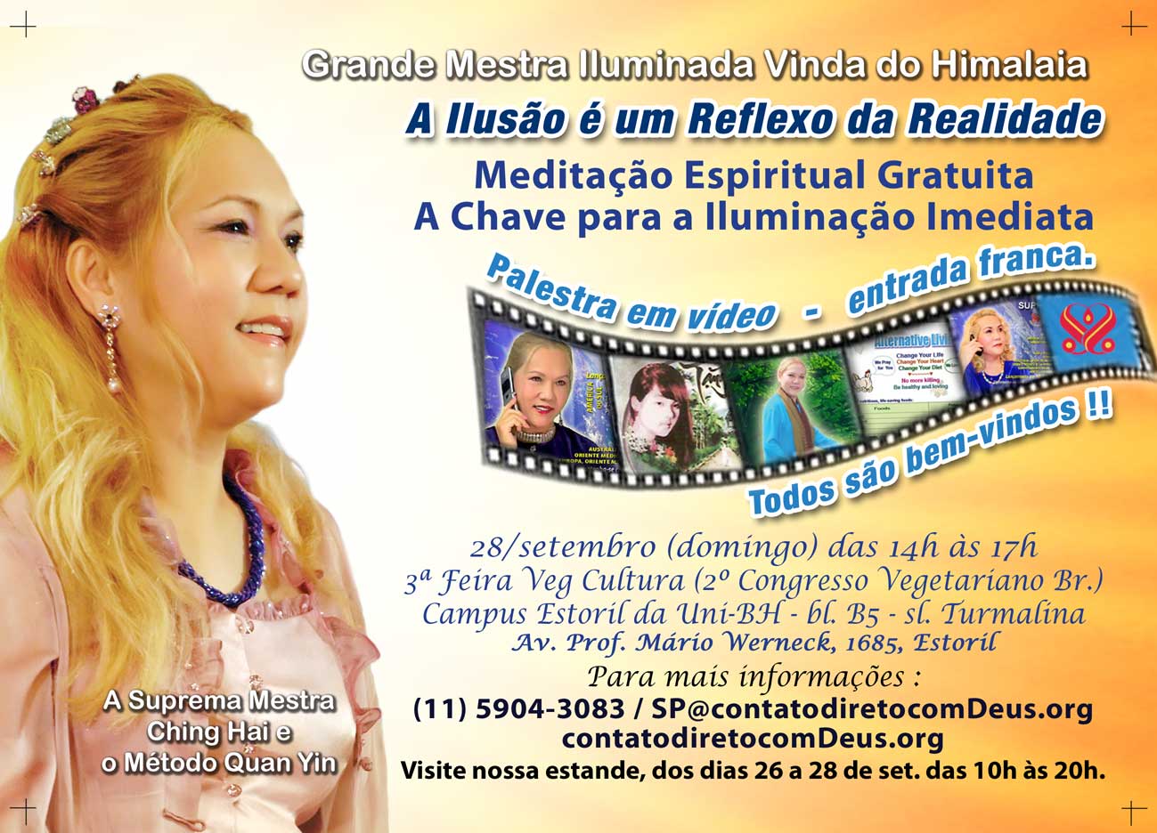 Membros da Associação Internacional estarão em uma estande própria da feira para dar informações sobre a Suprema Mestra Ching Hai, o Método Quan Yin, a Associação Internacional e o canal internacional e gratuito Supreme Master Television. Uma palestra em vídeo será realizada em 28 de setembro (domingo) com início às 14 horas (2h da tarde) e término às 17 horas (5h da tarde) na sala Turmalina no bloco B5 da Uni-BH, tendo como título A Ilusão é um Reflexo da Realidade.